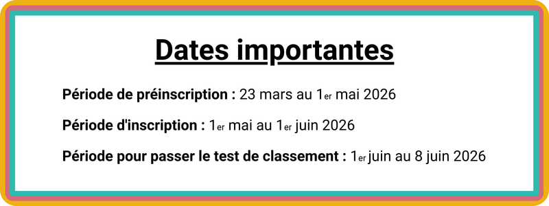 Période d'inscription : 1er mai au 1er juin 2026 (paiement dû au moment de l'inscription)